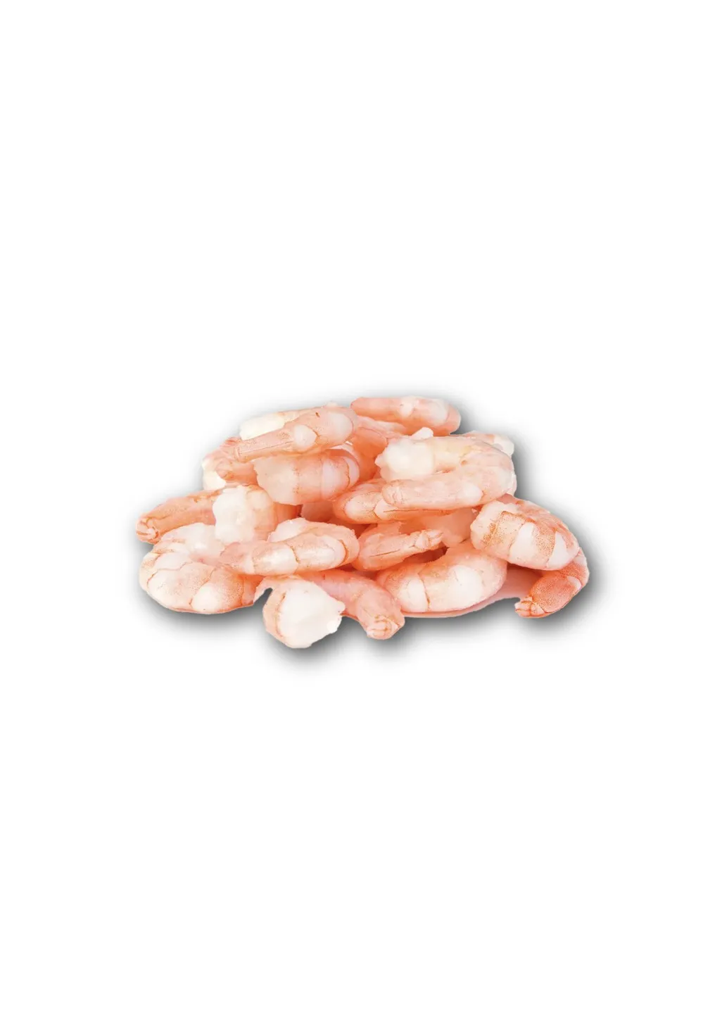 Camarones pequeños cocidos. Fáciles de usar y de rápida descongelación.