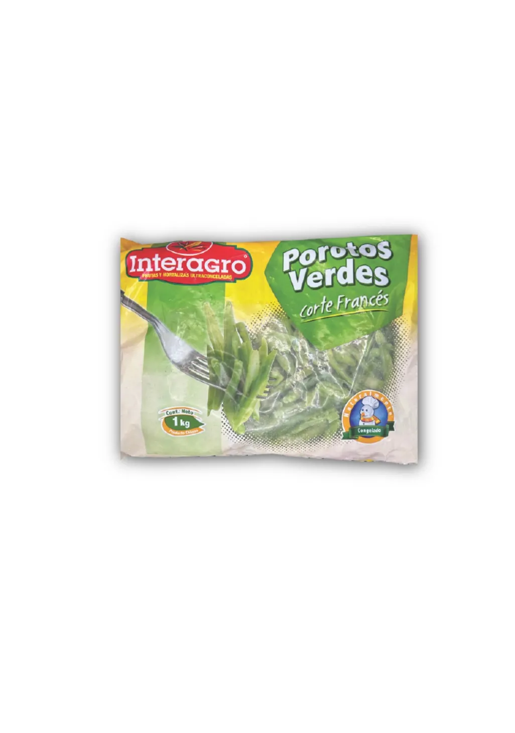 Porotos verdes congelados, de textura tierna y sabor suave. Mantienen su color y frescura gracias a su rápido proceso de congelado. Bolsas de 1 kg, con un total de 10 kg aprox. por caja.